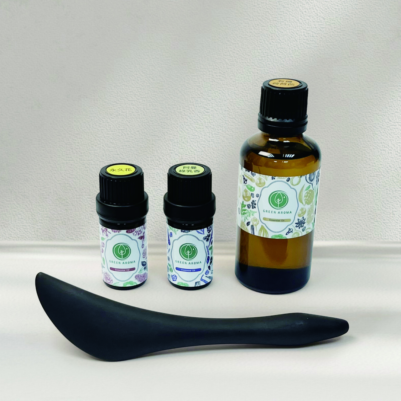 綠綺能量刮板按摩套組,結合天然礦石遠紅外線能量與植物精油的溫潤氣息,