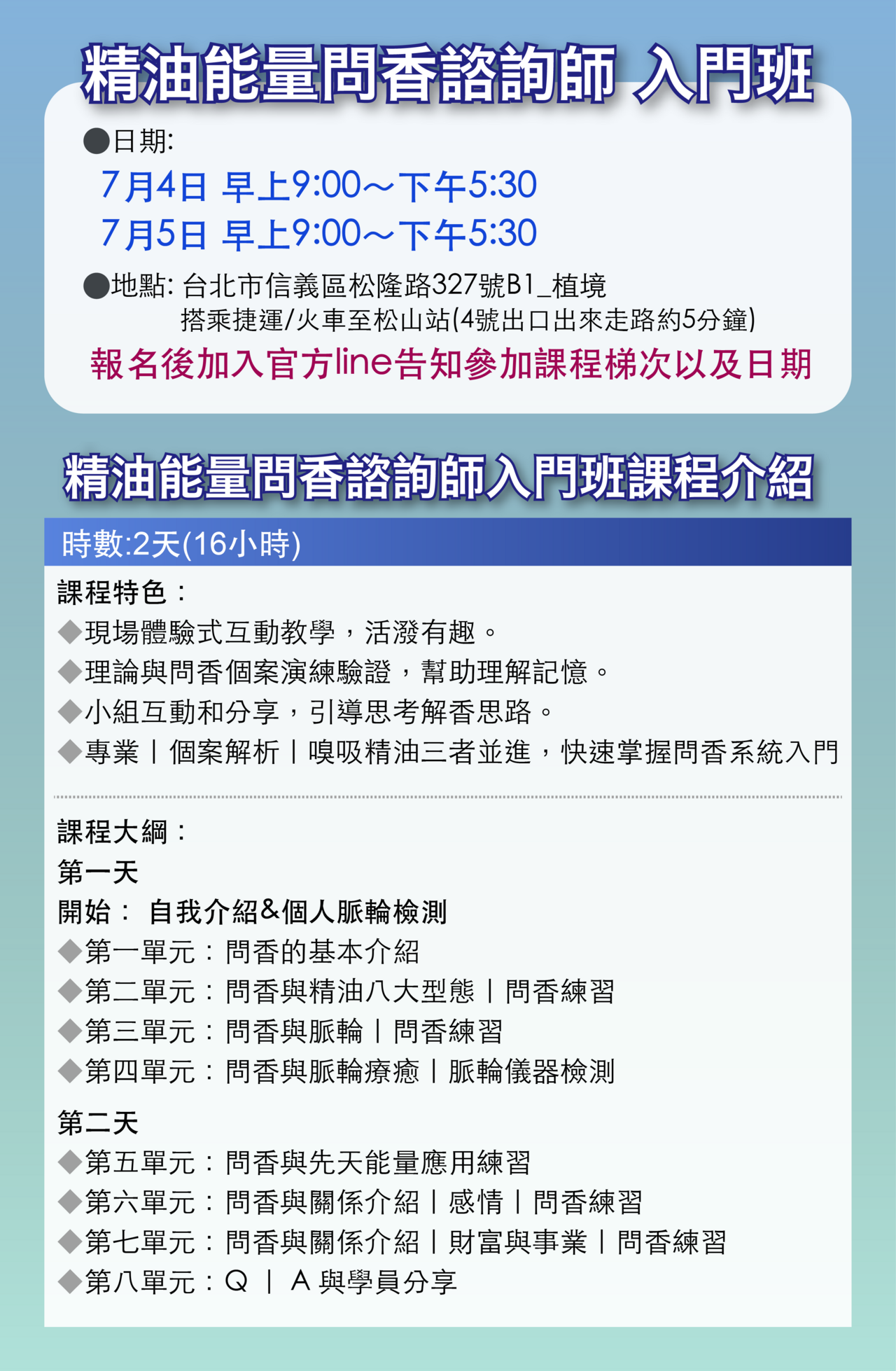 2026/7月_問香諮詢師入門班二日課程 (僅限已報名問香大師班學員參加)